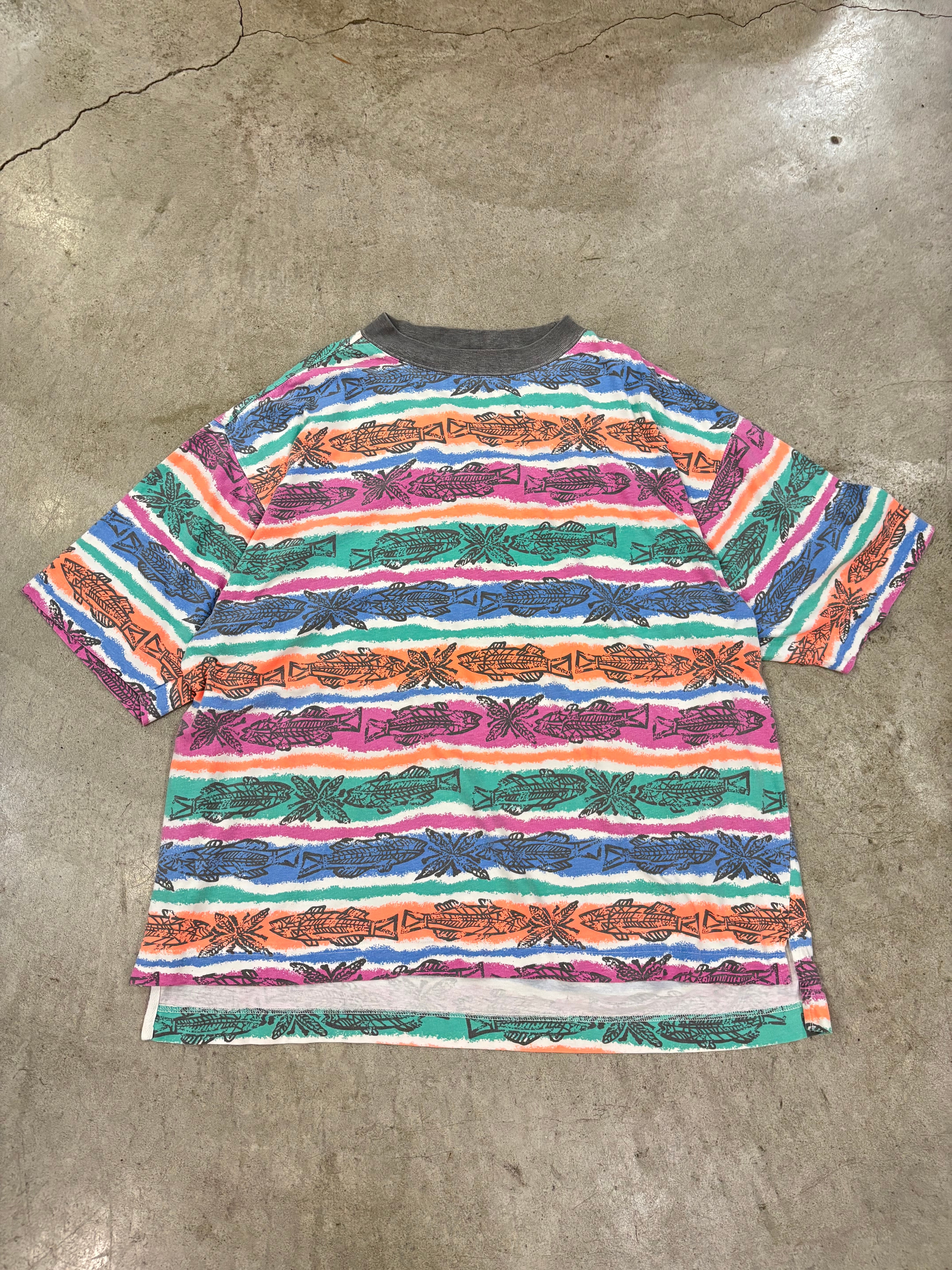 8〜90s「Jantzen」Border Patterned Printed Tshirts