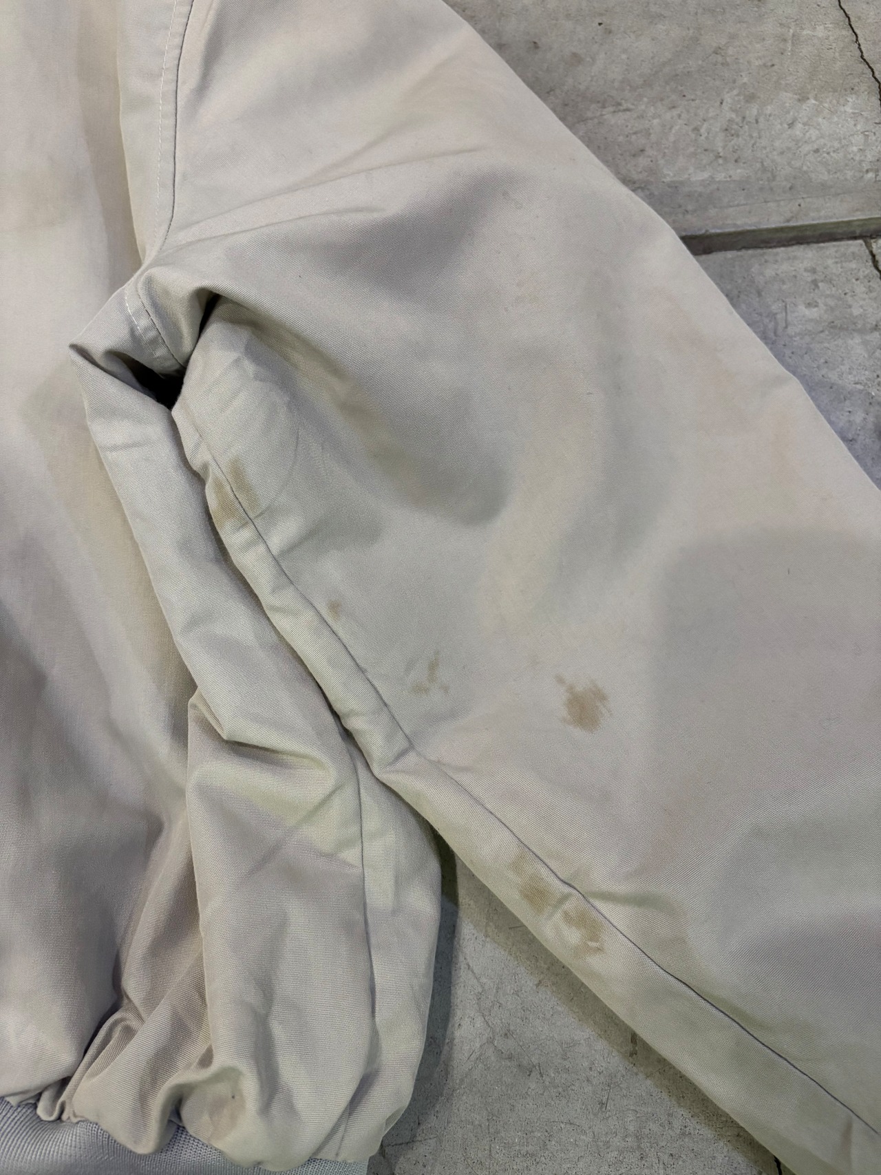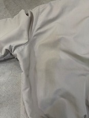 コンディションは、アーム、ライナー、ポケット、背面にシミがあります。