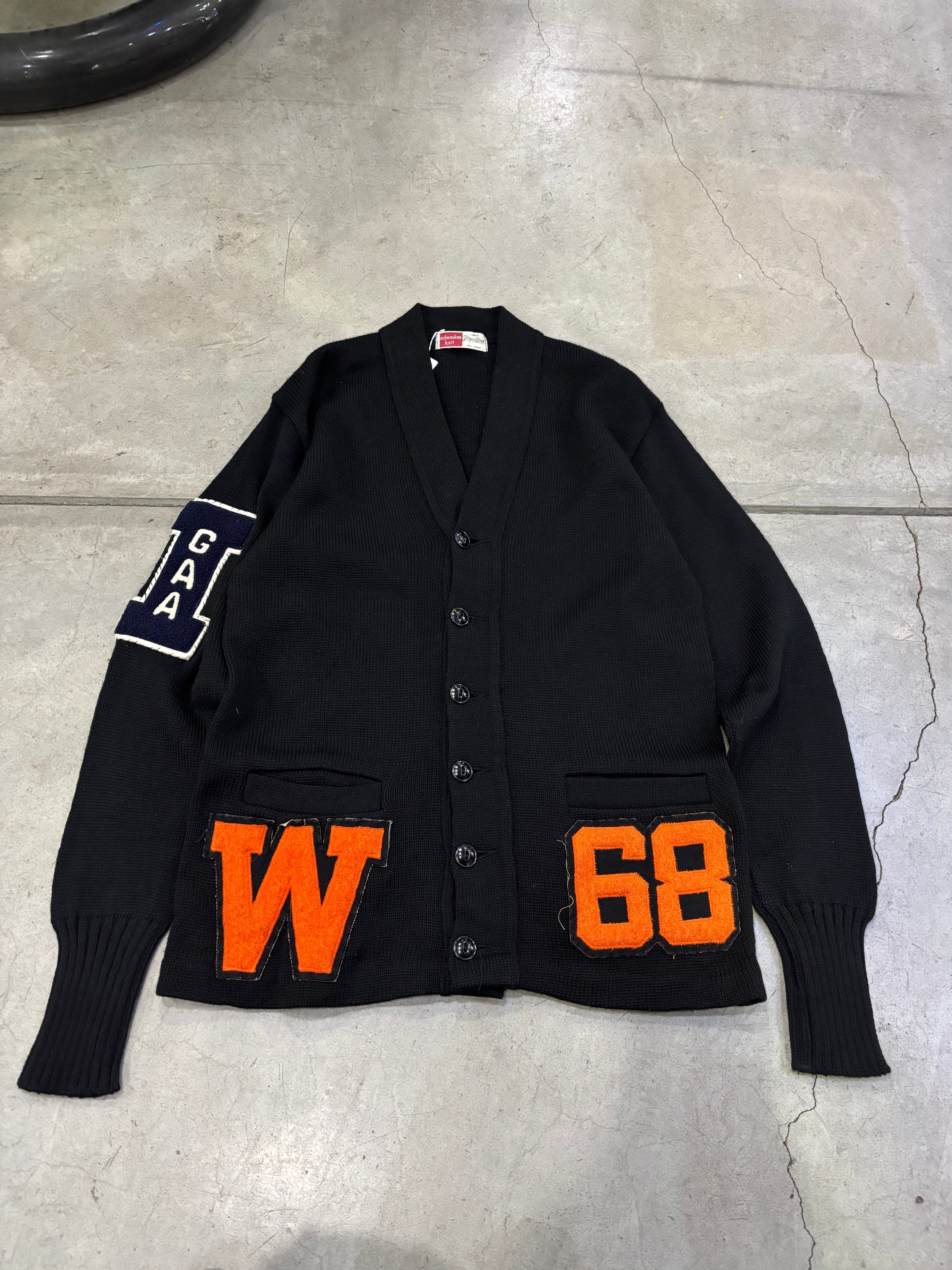 Late60s「Miwaukee Knit」Lettered Cardigan